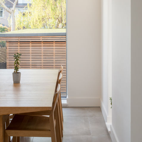 The rear ground floor extension is helping to create more living area and children space to play and study, as well as on the lower ground floor is providing space for a laundry, kitchen and dining blending outdoor in a decking area leading to the garden.